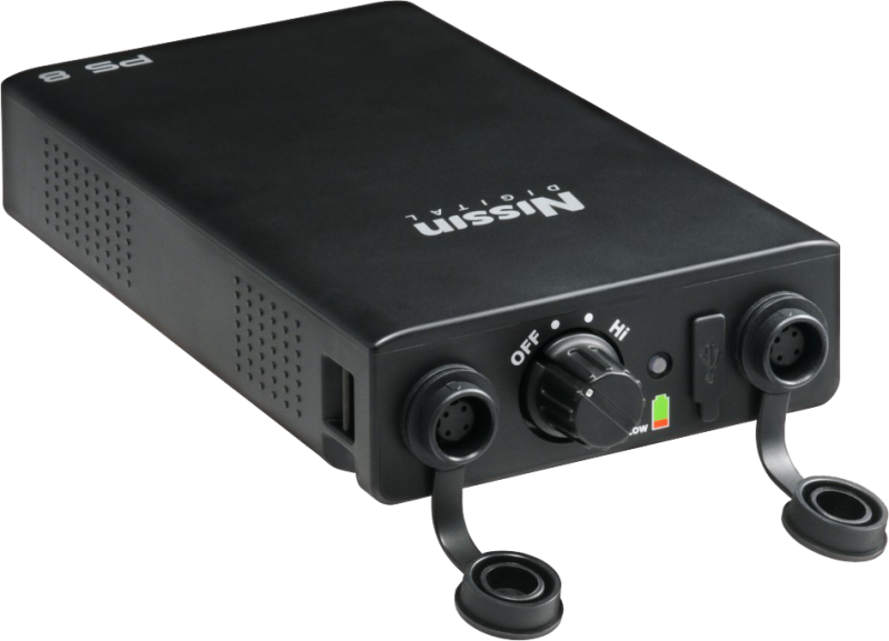 Внешний батарейный блок Nissin PS 8 создан для работы со вспышками для системы Canon. При использовании Nissin PS 8 совместно с элементами питания, установленными во вспышках, время перезарядки вспышки сокращается в четыре раза по сравнению с использованием только пальчиковых аккумуляторов. Батарейный блок имеет два разъема для подключения одновременно двух вспышек. При необходимости подключить к батарейному блоку вспышку другой системы (например, Nikon), необходимо использовать дополнительный кабель питания вспышки для этой системы.