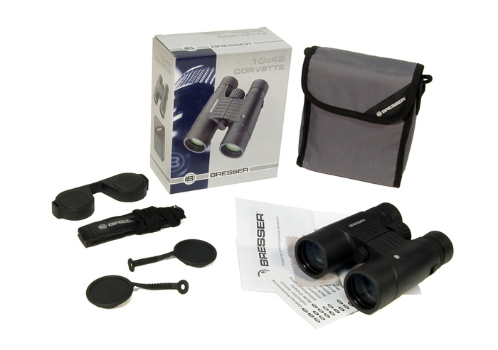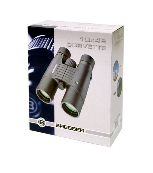 Bresser Corvette 10x42 – больше, чем обычный бинокль. Помимо всех основных характеристик, которыми обладают бинокли марки Bresser, данная модель отличается повышенной влагостойкостью и сверхпрочным корпусом. Такой бинокль крайне сложно разбить или даже поцарапать. Его можно использовать и в проливной дождь, и под шквалом морских волн – вода будет просто стекать по обрезиненному корпусу, не попадая внутрь. А так как внутри он заполнен инертным газом, то Вы никогда не узнаете, что такое конденсат на линзах. Можно сказать, что это бинокль для «настоящих мужчин», привычных к соленым брызгам моря, горным походам и опасным сплавам по рекам.