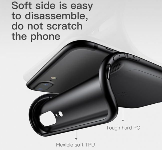 Стильный и оригинальный чехол-накладка Baseus Wireless Charging Receive Backclip защитит тыльную сторону и ребра вашего iPhone 7/8 от пыли, грязи и механических повреждений. Двухкомпонентная структура, представленная гибким термополиуретаном и высокопрочным поликарбонатом, обеспечит быструю и простую установку накладки, а также продлит срок эксплуатации коммуникатора. Аксессуар имеет заглушку для порта Lightning, которая при необходимости легко извлекается.