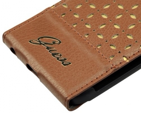 Guess – итальянский бренд, диктующий моду, одежда и аксессуары которого сочетают в себе американский шик и европейское внимание к качеству товаров. На сегодняшний день фирма Guess популярна, без преувеличения, во всем мире. Компания стремительно развивается и придумывает новые идеи стильных товаров для потребителей, теперь помимо одежды, обуви, часов и парфюмерии Guess решила не отставать от конкурентов и выпустила линию ультрасовременных чехлов для iPhone. Чехол Guess Gianina Flip из искусственной кожи удивляет своей функциональностью и стильным неповторимым дизайном. Этот модный чехол еще очень долгое время будет оставаться в тренде! Особенности