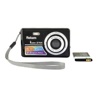 Цифровая камера Rekam iLook S959i (черный металлик) Rekam iLook S959i - легкая и компактная цифровая фотокамера. Разрешение 21 мегапикселей, обеспечивает высокую детализацию и четкость изображения. Функция стабилизации изображения позволяет делать моментальные снимки максимально устраняя дрожание камеры. Небольшой размер и легкий вес камеры позволяют каждый день держать ее под рукой - она не займет много места в небольшой сумке и легко поместится в кармане. На ярком 3-дюймовом экране удобно просматривать отснятые материалы и работать с меню камеры. Разнообразные режимы съёмки помогают получить отличные фотографии в любых условиях – на улице и в помещении, при ярком или недостаточном свете. Вы сможете выбрать специальные настройки для особых условий – вечеринка, пляж, ночная, спортивная и пейзажная съёмка. Функция «определения лица» позволяет камере автоматически фокусироваться на лицах, как основных объектах съёмки, благодаря чему вы сможете снимать отличные портреты и групповые снимки. В режиме «определение улыбки» камера автоматически производит съёмку, когда ваша модель начинает улыбаться. Кроме фотосъемки камера Rekam iLook S959i позволяет снимать видеоклипы с HD-разрешением. Поддержка карт памяти до 32 Гб дает возможность не заботится об экономии места.