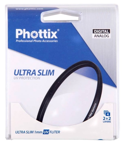 Бесцветный ультрафиолетовый светофильтр Phottix Ultra Slim с 2-х слойным просветлением в узкой оправе отсекает и поглощает ультрафиолетовое излучение, устраняет избыточный синий оттенок, снижает эффект «дымки» (haze) и повышает контраст. Особенно полезен в местах, где ультрафиолетовое излучение наиболее интенсивно: например, в горах или у водоемов. Характеристики: