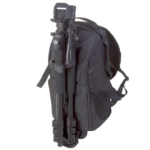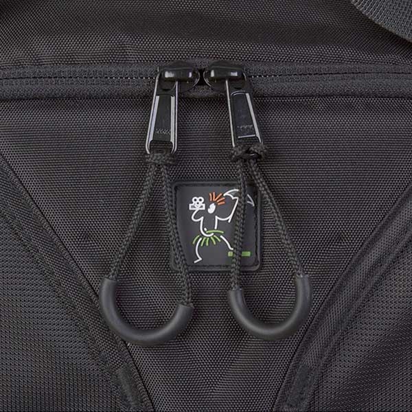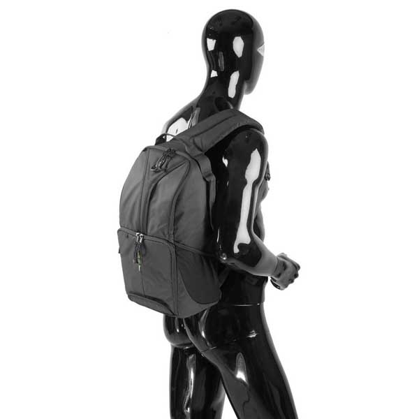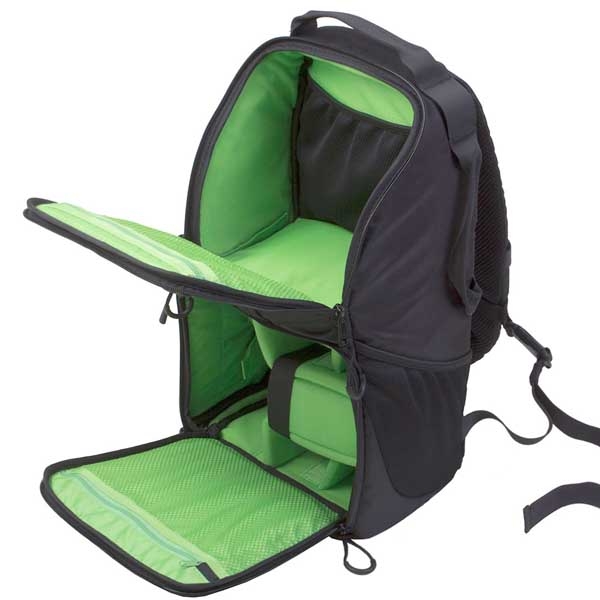 Вместительный рюкзак слинг предназначен для транспортировки и хранения зеркальной камеры, 2–3 объективов, вспышки и аксессуаров. Изготовлен из устойчивого к климатическим воздействиям нейлона с защитным вспененным наполнителем, внутренние стенки из мягкого вельвета яркого зеленого цвета, на фоне которого не затеряются даже самые мелкие предметы. Конструкция слинга и двухзамковые молнии позволяют получить быстрый доступ к фото или видео камере, дополнительному оборудованию. Можно легко перекинуть рюкзак из-за спины на живот и откинув от себя боковую крышку, безопасно и удобно открывать нижний отсек рюкзака, а также использовать это положение как упор под локоть при съемке. Широкая лямка распределяет нагрузку на плече и обеспечивает комфортную эксплуатацию. При необходимости лямки можно спрятать в специально предусмотренный карман и использовать рюкзак как сумку (сверху и сбоку имеются ручки для переноски). Металлические язычки молний снабжены удобными нейлоновыми петлями. «Дышащая» спинка Air Comfort изготовлена из мягкого вспененного материала и 3D сетки для улучшенной вентиляции воздуха. В нижней части рюкзака располагается специальный карман для упора и фиксации на месте штативной ноги, сверху (на крышке рюкзака) штатив удерживается лямкой. Также снизу имеется потайной карман с чехлом, защищающим технику от дождя, пыли и песка. Основной отсек для техники имеет перегородки на липучках, благодаря этому пространство внутри рюкзака можно настроить под необходимое оборудование. Два кармана под карты памяти и другие мелкие аксессуары располагаются на боковой крышке. Для личных вещей и дополнительного оборудования в рюкзаке предусмотрен большой верхний отсек с двумя карманами-сетками.