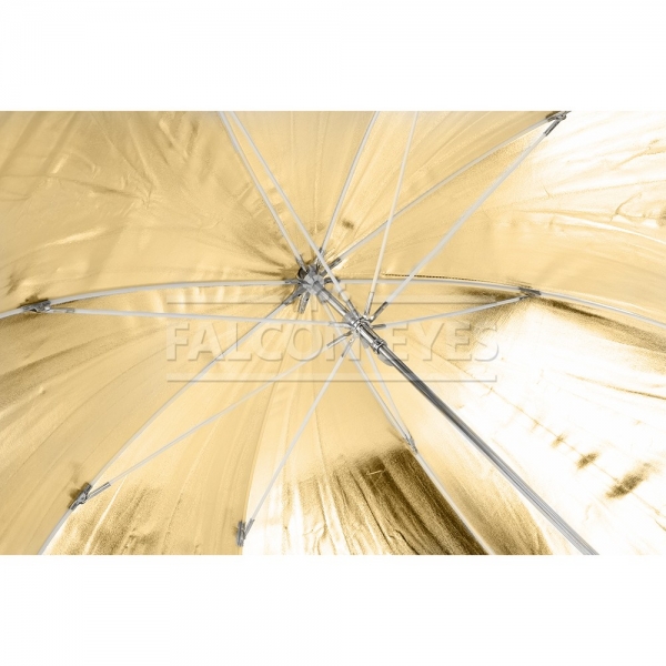 Зонт-отражатель URK-60TGS универсальный, предназначен для рассеивания света от источников освещения. В комплекте двусторонний отражатель золото/серебро и полупрозрачный рассеиватель. Данная модель позволяет комбинировать поверхности для получения 5 модификаций: просвечивающий / золотистый / серебристый / просвечивающий+золотистый / просвечивающий+серебристый. Диаметр 122 см. Просветный зонт покрыт белой полупрозрачной тканью. Световой поток от вспышки попадает на ткань зонта, максимально рассеивается и, увеличивая площадь излучения, равномерно освещает объект съемки. Таким образом, резкий точечный свет, излучаемый при срабатывании фотовспышки, преобразуется в достаточно мягкий световой поток, излучаемый с большей площади. Серебристая поверхность зонта дает более жесткий, по сравнению с белыми зонтами, свет, что позволяет получать контрастное изображение с четкими тенями. Золотистая поверхность придает отраженному свету теплые золотистые тона, часто используется в портретной съемке в качестве моделирующего или контрового источника (например, для того чтобы подчеркнуть теплым светом очертания фигуры). Возможно использовать сочетания поверхностей (просвечивающей и отражающих серебристой/золотистой) для усреднения формируемого эффекта - получения более контролируемого и направленного света (чем при использовании просвечивающей поверхности), и менее контрастного мягкого (чем при использовании серебристой/золотистой поверхности) Прочные эластичные спицы из стекловолокна и соединительные элементы из ударопрочного пластика для долговечного использования - спицы не ржавеют, сохраняют форму на протяжении всего срока эксплуатации, устойчивы к механическим воздействиям. Ткань из полиэстера обладает высокой износостойкостью.