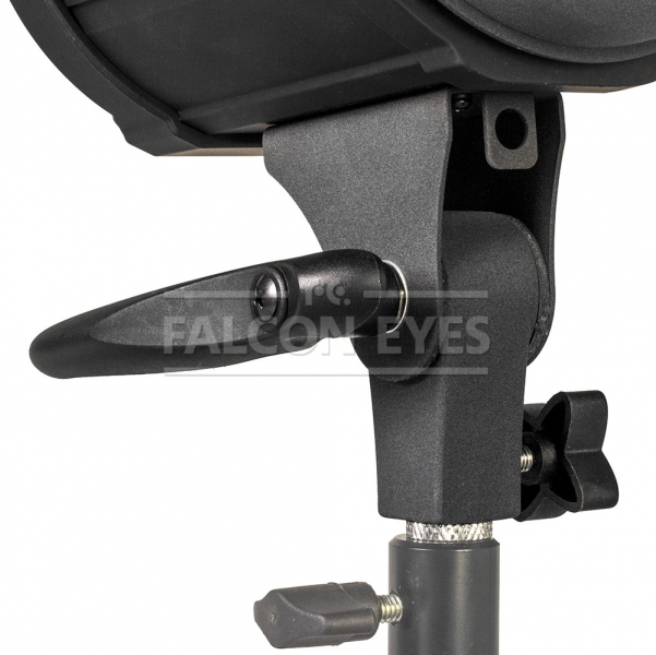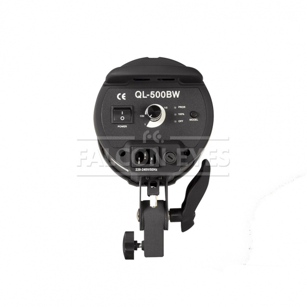 В осветителе установлена галогеновая лампа модели THL-500 с патроном G9.5. Цветовая температура ламп подобного типа составляет 3200К («Солнце через час после восхода»). С галогеновыми осветителями рекомендуется использовать жаропрочные софтбоксы (Falcon Eyes SBQ BW-выполнены из термостойкого материала, оснащены дополнительными вентиляционными шторками и поставляются в комплекте с сотовыми насадками), либо фотозонты на просвет или отражение (Falcon Eyes UR . Крепление на стойку для QL-500BW осуществляется при помощи металлического кронштейна, его можно передвигать вдоль по нижнему основанию моноблока для возможности установить нужный баланс системы «осветитель- насадка». На стойке кронштейн и осветитель фиксируются винтом. В тубусе размещено отверстие для крепления зонта с штоком 8-10 мм. Фиксация штока осуществляется винтом.