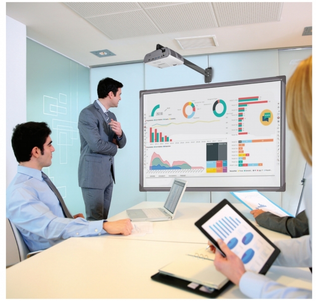Интерактивный комплект с короткофокусным проектором и креплением построен на базе самой бюджетной сенсорной интерактивной доске EliteBoard WR-82S10, короткофокусного проектора ViewSonic PJD5353Ls, а также надежного настенно-потолочного крепления STOIKO MS-750. Интерактивная доска EliteBoard WR-82S10 поддерживает одновременно до 10 касаний, а также мульти-тач функционал, распознает рукописный ввод и жестикуляцию. Поверхность доски прочная алюминиевая и легко очищаемая. Подключение к компьютеру осуществляется через USB-порт. Несколько слов про проектор ViewSonic PJD5353Ls, идущий в комплекте. Проектор является короткофокусным, это означает, что он будет размещен совсем недалеко от доски и тень от него будет несущественной. Разрешение проектора XGA, яркость 3200. Срок службы лампы составляет 5000 часов. Из доступных портов на коммутационной панели проектора ViewSonic PJD5353Ls представлены: HDMI 1.3; Выходы: VGA, аудио mini jack; Входы: VGA x2, HDMI, S-Video, композитный, компонентный, аудио mini jack; USB (тип B), RS-232.