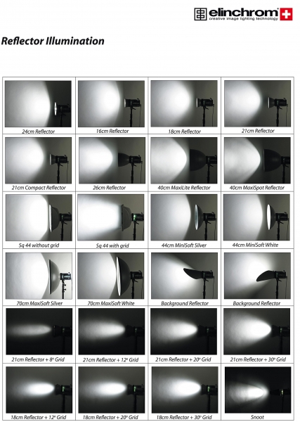Набор круговых сотовых насадок включает в себя сам рефлектор (арт.26144, тип: 18 см, 60°), насадку 30° (арт. 26100), насадку 20° (арт.26101), насадку 12° (арт.26102) и держатель для цветных фильтров (арт. 26132).