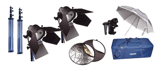 Простой универсальный комплект постановочного света. 2000/DD KIT — самое универсальное решение на базе 2-х светильников. Светильники Logocam D-Spot 1000 могут использоваться и как рисующие и как заливающие, что придает данному комплекту 100% универсальность. Наличие в комплекте зонта и набора рефлекторов позволяет расширить диапазон творческих возможностей при работе со светом. Состав комплекта: