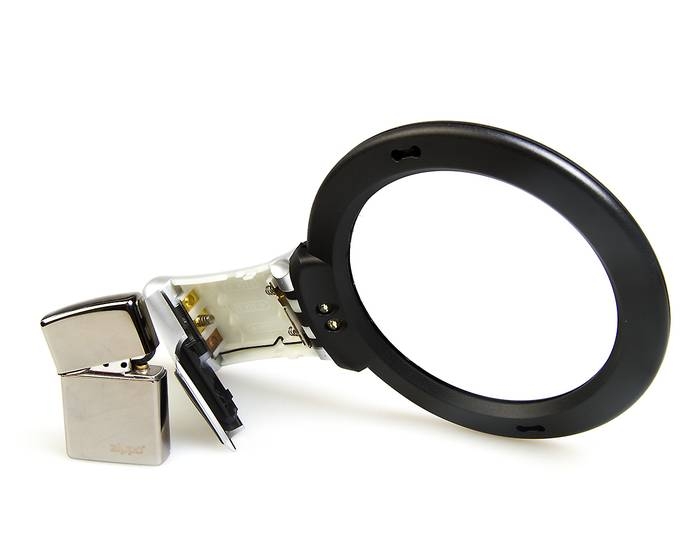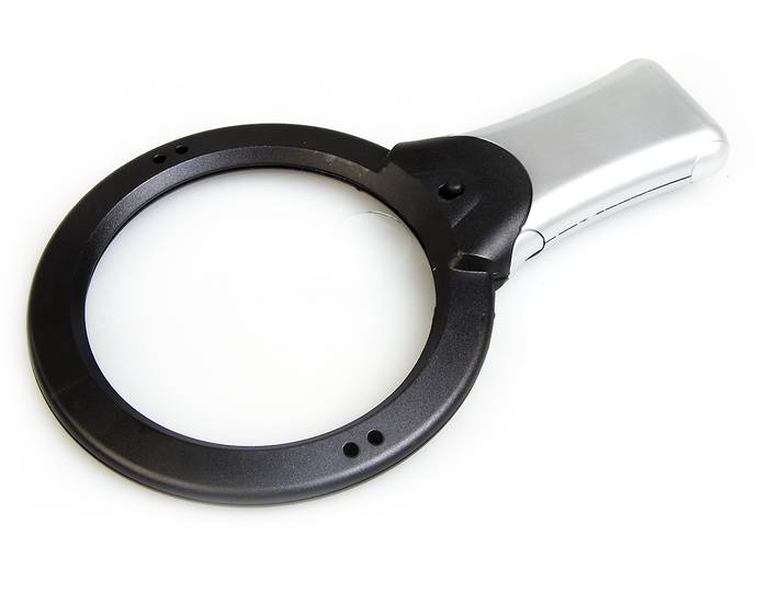Кратность увеличения линзы — 2х, на поверхности линзы находится «пятачок» диаметром 25 мм с увеличением 4х (материал линзы — пластик). Подсветка — два мощных светодиода у основания ручки. Питание — три батареи типа AAA, 1,5 В, (находятся в ручке, в комплект не входят). На оправе линзы находятся отверстия для шнурка (шнурок в комплект не входит). Технические характеристики Увеличение, крат: 2-4 Диаметр линзы, мм: 100 Диаметр дополнительной линзы, мм: 25 Материал линзы: пластик Материал корпуса: пластик Общая длина, мм: 220 Вес (без батареек), г: 100 |