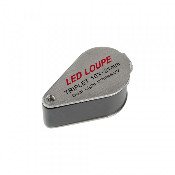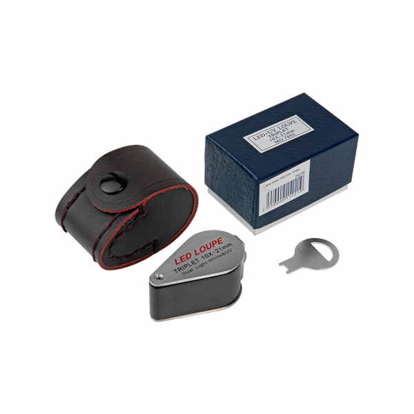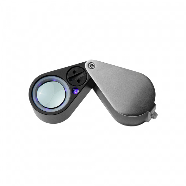 Корпус лупы и оправа изготовлены из металла. Сверху на оправе предусмотрен переключатель подсветки: подсветка поля зрения линзы и УФ подсветка. На нижней части оправы (вокруг линзы) расположены 6 УФ светодиодов и ещё один более мощный УФ светодиод расположен около батарейного отсека. Также на нижней части корпуса находится отсек для батарейки под винтовой крышкой.