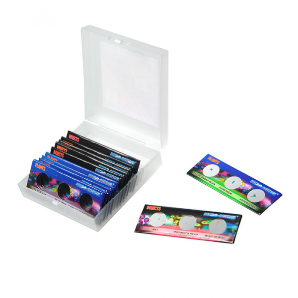 Микропрепараты 36 образцов Набор состоит из 12 стекол. На каждом стекле по 3 микропрепарата. Микропрепараты безопасны для ребенка — стекла запаяны в пленку. В составе набора есть срезы растений, насекомых, водорослей.