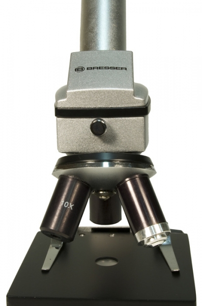 Для возможности быстрой смены используемого увеличения микроскоп оснащен револьверной головкой на три объектива, которая позволяет заменить один объектив на другой буквально за несколько секунд. Для этого достаточно провернуть головку на треть оборота.