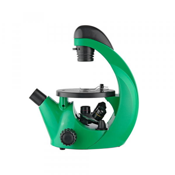 Основное отличие инвертированных (перевернутых) микроскопов от прямых в том, что объективы расположены снизу под объектом наблюдения, а осветительный конденсор сверху. Такая конструкция микроскопа значительно расширяет возможности проведения научных исследований. Можно исследовать биологические объекты зафиксированные на предметном стекле, изучать биокультуры непосредственно в стеклянной лабораторной посуде с питательной средой, наблюдая за развитием культур через стеклянное дно посуды, наблюдать результаты химических реакции в стеклянной лабораторной посуде (чашки Петри, колбы). Микроскоп можно применять при проведении школьных лабораторных работ в области ботаники, биологии и химии. Так же это идеальный инструмент для проведения исследований в домашних условиях и может стать отличным подарком ребенку.