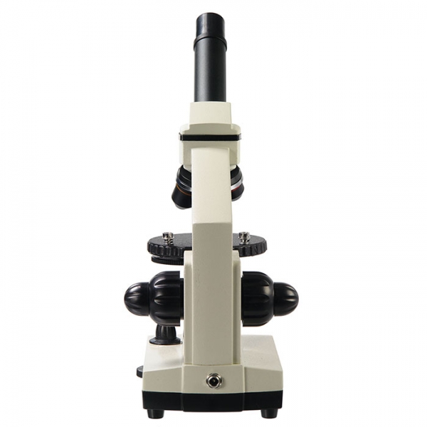 • Рукоятки грубой и тонкой фокусировки, расположенные по обеим сторонам штатива, обеспечивают точную настройку резкости изображения на большом увеличении. Рукоятки расположены на одной оси. Такая комфортная система фокусировки отличает этот микроскоп от других школьных моделей.