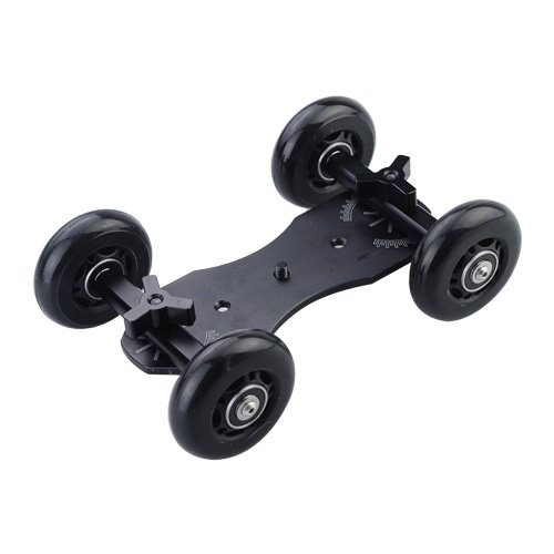 Напольная, настольная мини тележка для DSLR камер Мини тележка для видеосъёмки обеспечивает плавную съёмку с ровных поверхностей, создавая эффект приближения или удаления от объекта съёмки, движения вокруг или вдоль него.
