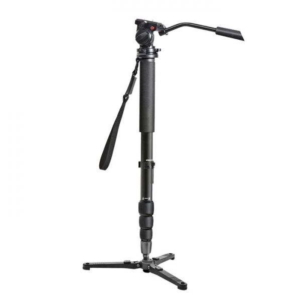 Алюминиевая нога монопода состоит из 4 секций, между собой секции прочно соединяются цанговыми зажимами. Нижняя база, с тремя лапками, крепится к моноподу с помощью винта 3/8" через шарнирный узел, который позволяет - регулировать угол наклона монопода до 18˚, фиксировать вертикальное положение, а также осуществлять панорамирование на 360˚. Рукоятка из вспененного материала и ремень с карабином (для крепления на поясе) обеспечат удобную и безопасную эксплуатацию. В комплекте прочный чехол на молнии, со стенками из вспененного материала. Монопод и цанговые зажимы изготовлен из алюминиевого сплава, благодаря этому вес HDV Elite 317 составляет менее 1,5 кг. Идеально подходит для выездных съемок (свадьбы, спорт и т.д.).
