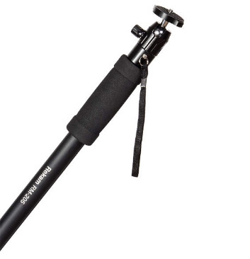 Монопод Rekam RM-205 Данное устройство, как и штативы, применяется для стабилизации фотокамеры при фотосъёмке. Основная особенность, отличающая монопод от штатива – наличие одной опорной «ноги». Монопод не избавляет фотоаппарат от «шевелёнки» полностью, тем не менее, позволяет поставить выдержку на один-два стопа большую, нежели при съёмке с рук. Главное преимущество монопода – мобильность; фотограф со штативом фактически привязан к одной точке (сворачивание-установка штатива занимает около минуты), в то время как с моноподом он может двигаться, отыскивая подходящие ракурсы. Все модели моноподов имеют удобные и жесткие фиксаторы для изменения высоты «ноги», а также лёгкую и прочную сумку-чехол, для переноса и защиты от механических повреждений. Очень удобно использовать монопод для репортажной съёмки. В этом случае он просто незаменим, так как при большом скоплении людей, просто нет возможности установить штатив. Характеристики