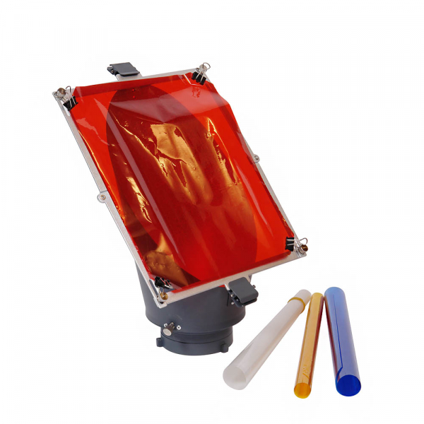 Для окрашивания светового пятна в комплекте предусмотрены складная металлическая рамка и четыре сменных фильтра (белый рассеивающий, красный, жёлтый и синий). Фильтры устанавливаются на рамку с помощью четырёх прищепок, находящихся по углам. Рамка с установленным фильтром фиксируется на корпусе насадки клипсами, находящимися на насадке. Размер фильтров — 31×25 см.