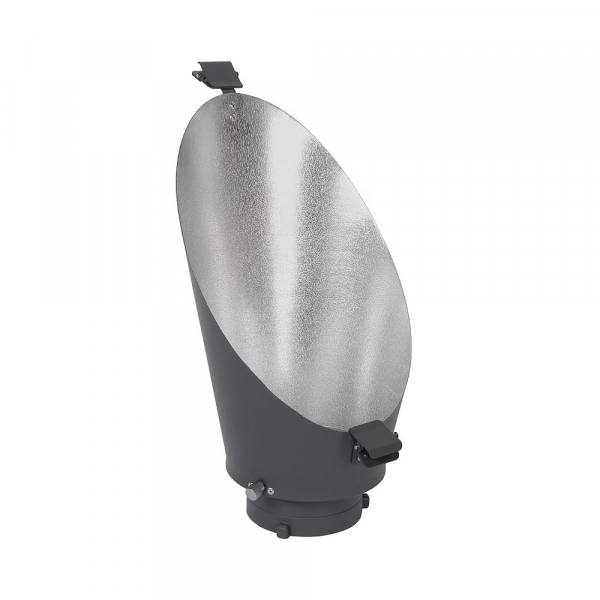 Корпус насадки изготовлен из металла. Для установки сменных фильтров, на корпусе насадки предусмотрены две клипсы. Внутри насадки отражающее серебристое покрытие. Размер «среза» насадки составляет 31×20 см