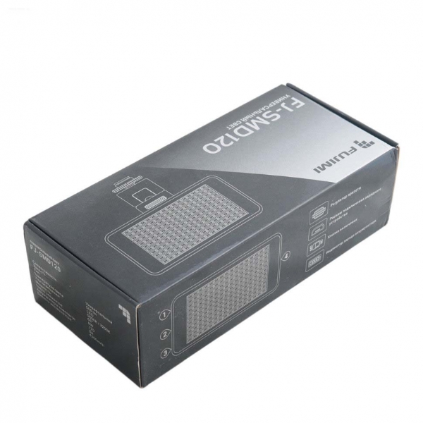 FUJIMI FJ-SMD120 Компактная и тонкая универсальная лампа на SMD диодах для DSLR видео и фото съёмки. Максимальная комплектация и продолжительное время работы делают FJ-SMD120 идеальным и необходимым аксессуаром для вашей фото и видео камеры. В отличие от стандартных диодов, SMD диоды обеспечивают более яркое освещение при меньших размерах устройства.