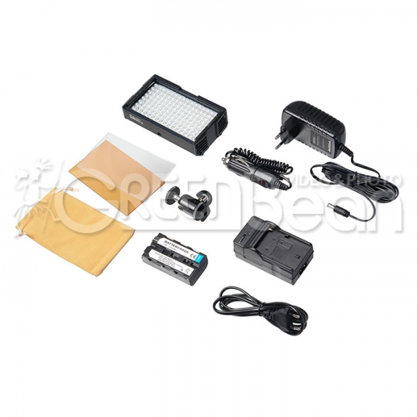 Осветитель светодиодный накамерный GreenBean LuxMan 128 LED Накамерный осветитель LuxMan 128 LED, благодаря широкоформатным пропорциям корпуса (124х70 мм), обеспечивает равномерное освещение при видеосъемке без падения яркости по краям кадра. В качестве источника света используются новые светодиоды с индексом цветопередачи CRI >90, которые позволяют передать точные цвета снимаемого объекта, а световой поток достигает 900 лм. Цветовая температура осветителей 5500 К (3200 К с фильтром). В комплекте аккумулятор 2100 мАч типа NP-F и сетевой адаптер. Аккумулятор обеспечивает 2-3 часа непрерывной работы, а для более продолжительных съемок осветитель можно подключить к сети 220 В с помощью адаптера (9 В 2,5 А). На задней панели устройства находится диммер, который позволяет плавно регулировать яркость в пределах 10-100%. Прочный алюминиевый корпус с порошковым покрытием защитит осветитель от ударов при транспортировке. Благодаря крепежному адаптеру с шаровым основанием, установленный на камере осветитель можно наклонить или повернуть в нужном направлении.