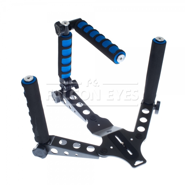 При использовании в качестве наплечного штатива max расстояние между ручками составляет 400 мм (регулируется), длина ручек 210 мм. Снизу и сверху в ручках имеются отверстия 1/4 дюйма для крепления дополнительных аксессуаров (осветителей, микрофона