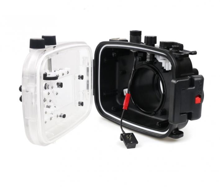 Подводный бокс имеет сертификат IPX8 & CES. В комплекте поставляется со сменным портом к объективу 16-50мм, к этому порту также подходят объективы 35мм.
