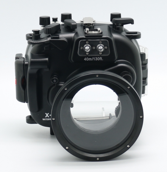 Подводный бокс (аквабокс) Meikon для фотоаппарата FujiFilm X-T1 (18-55 мм) Meikon Fujifilm X-T1 (18-55) подводный бокс (аквабокс) для фотоаппаратов Fujifilm X-T1 с объективом 18-55 мм - выполнен из сверхпрочного поликарбоната с дополнительными ребрами жесткости повышающими крепкость бокса на глубинах до 40 метров. Внешнее покрытие пластика не скользит в руках. Бокс полностью поддерживает все функции фотокамеры, включая и работу с внешними подводными вспышками через два оптических порта, имеет датчик протекания. Удачная эргономика бокса позволит Вам легко управлять фотоаппаратом даже в подводных перчатках.