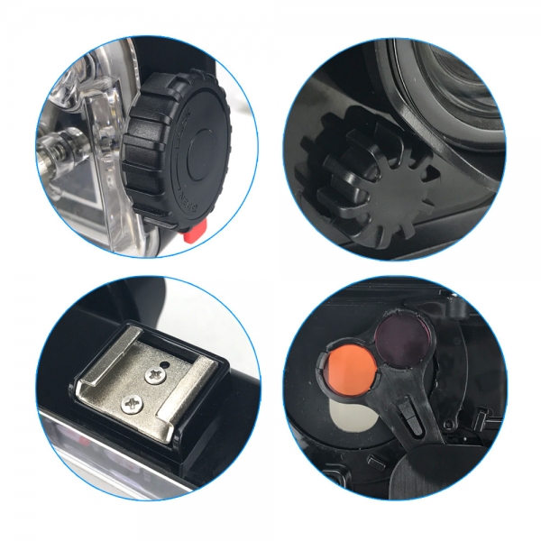 Встроенная система светофильтров (красный и розовый), позволяют получать красочные изображения подводного мира в морской и пресной воде.