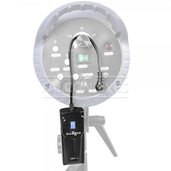 Передатчик устанавливается в «горячий башмак» камеры, фиксируется винтом и передает сигнал на приемник при срабатывании затвора. Кнопка «Тест» на передатчике позволит провести проверку настройки синхронизатора и смоделировать работу осветителей. Время работы передатчика от одной батареи — год в режиме ожидания или 20000 непрерывных срабатываний. Питается от батареи типа 23А (12 В). Приемник подключается к вспышке с помощью синхрокабеля, работает от двух батарей типа ААА и «запускает» вспышку при получении сигнала от передатчика. В конструкции реализована защита от помех. Скорость синхронизации до 1/250 секунды.