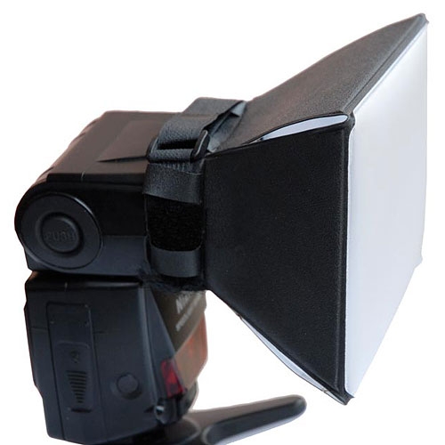 Рассеиватель Flama FL-B5 изготовлен из черного нейлона с одной стороны и белого полимера с другой. Крепится непосредственно на вспышку при помощи «липучки», что позволяет оперативно снимать и устанавливать отражатель. Flama FL-B5 отличается компактными размерами и малым весом, благодаря чему он без проблем поместится в любой фотосумке. Размеры поверхности рассеивателя: 13х10 см