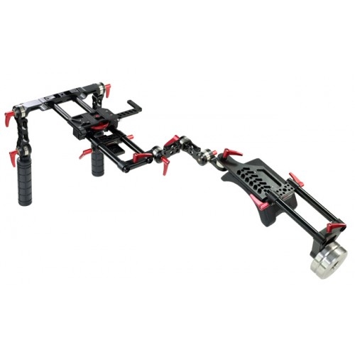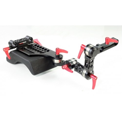 - Рукоятки. Рукоятки с мягкими ручками с противоскользящими покрытием обеспечивают оператору прочный хват во время работы, тем самым обеспечивая максимальный комфорт во время даже самой продолжительной съемки. Положение рукояток регулируется и надежно фиксируется при помощи двойного замка в любой позиции. Рукоятки можно установить как на 15-мм, так и на19-мм рельсовую опору.