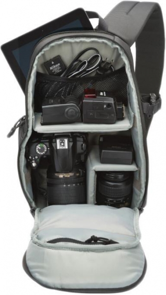 Рюкзак LowePro Transit Sling 150 AW оснащен инновационной системой UltraFlex, которая представляет собой основную перегородку с множеством дополнительных. При ее использовании в сумке уместятся несколько небольших объективов. Если перегородку сложить, то пространство перестраивается таким образом, что в нем уже разместится один длиннофокусный объектив и несколько среднефокусных. Все перегородки можно убрать и использовать рюкзак как обычный городской и повседневный. Данное решение понравится городским фотографам и путешественникам, а так же фотографам, в арсенале которых находится внушительное количество различных объективов. Используя рюкзак или слинг серии Transit фотограф будет иметь выбор какой комплект объективов он возьмет с собой на съемку.