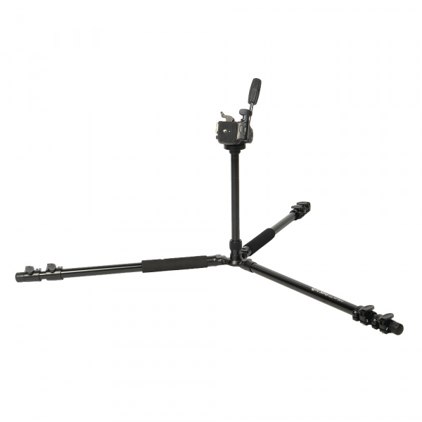 Плавно, с усилием поворачивать камеру на 360° вокруг своей оси и на –90 до +45° по вертикали позволяет 3D-штативная голова со съемной рукояткой (13 см). Голова сменная, выполнена из алюминиево-магниевого сплава. Градуированная шкала и пузырьковый уровень помогают отрегулировать угол наклона камеры. Быстросъемная площадка оборудована винтом 1/4” для установки оборудования. Основание для площадки можно поднять на 90° и зафиксировать винтовым зажимом. Таким образом положение камеры можно изменять по трем осям для точного позиционирования во время съемки.