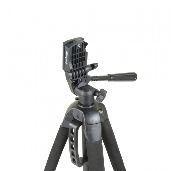 В основании головки расположен винтовой фиксатор горизонтального панорамирования. Ручка штатива предназначена не только для быстрого наведения камеры на «цель», но и винтовым фиксатором угла наклона головки. Длина ручки — 15 см. Оперативно повернуть и зафиксировать фотокамеру для съёмки в вертикальной ориентации (или на произвольный угол до 90°) возможно благодаря шарнирному креплению быстросъёмной площадки. Фиксация угла наклона площадки — винтовая. Головка оснащена быстросъёмной площадкой с противоскользящими накладками и встроенным пузырьковым уровнем. На площадке расположен винт с резьбой 1/4″ и подпружиненный штифт. Размер площадки 51×71 мм.