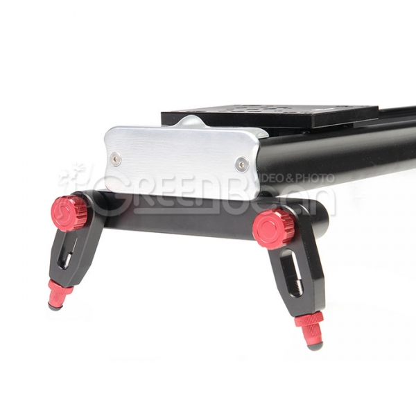 Слайдер GreenBean Glide Track Production можно использовать на любых поверхностях и в любых условиях. Возможна установка на штативы или на съемные опоры двух видов из комплекта поставки – короткие резиновые ножки и кронштейны с вывинчивающимися поворотными ножками. На направляющей рельсе предусмотрены спаренные резьбовые отверстия диаметром 1/4" и 3/8", отверстия расположены в 5 точках для установки слайдера под разными углами наклона на штативы. Короткие резиновые опоры можно использовать на ровных поверхностях, где не требуется выравнивание слайдера по уровню горизонта. Кронштейн с ножками позволит установить слайдер на более сложных поверхностях, где требуется тонкая настройка уровня. Ножки на кронштейне наклоняются, регулируются по высоте на 15 мм и поворачиваются на 360˚ вокруг оси крепления. Ножки соединяются с кронштейном с помощью зубчатой муфты, препятствующей проскальзыванию. В узле крепления ножки находится прижимная пружина, если ослабить зажим, то ножка не потеряет своего положения, но позволит отклонить ее ступенчато через зубчатый механизм. На концах ножек расположены наконечники с резиновой опорой