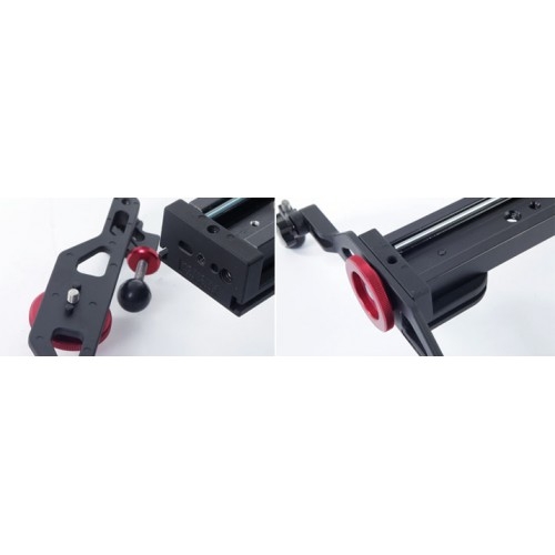 Штатив или головку можно прикрепить к нижней части рельс слайдера. Слайдер Konova совместим с головкой или адаптером 3/8"- 5/8" (поставляется отдельно). Возможна установка камеры под любым углом. Высота ножек регулируется, что позволяет установить слайдер под наклоном. При необходимости рельсы с легкостью снимаются с ножек.