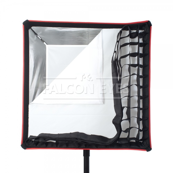 Софтбокс Falcon Eyes SBQ-6060 BW жаропрочный с сотовой насадкой — световой модификатор для студийных осветительных приборов с байонетом Bowens, предназначен для создания мягкого рассеянного освещения без резких теней и бликов. Размер софтбокса 60×60 см. Может использоваться практически с любыми студийными вспышками или галогеновыми осветителями мощностью до 1000 Вт.