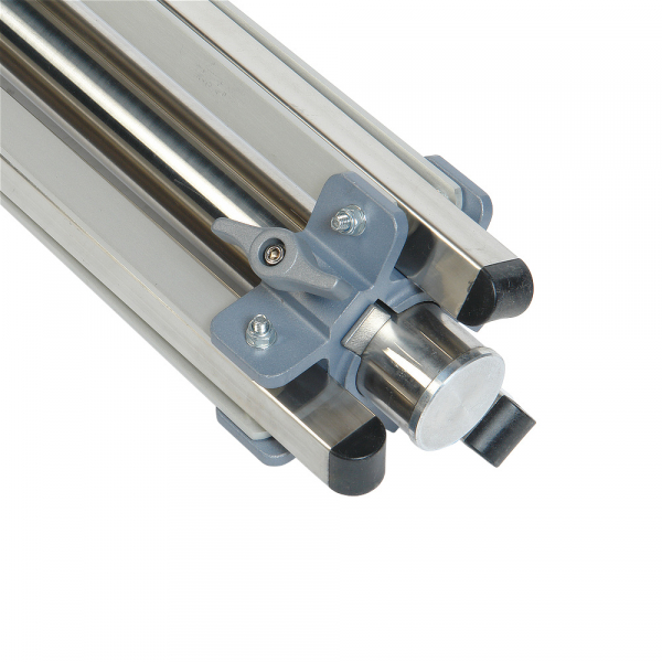 • Прочные ножки из прямоугольного стального профиля (26 х 26 мм) обеспечивают устойчивое положение стойки на любой поверхности. Благодаря пластиковым насадкам они не царапают пол. Одна из ног – телескопическая (длина увеличивается на 25 см). Это дает возможность использовать стойку на поверхности с перепадом высот, например на лестнице, или наклонить ее под нужным углом, если дополнительно укомплектовать подходящим противовесом.