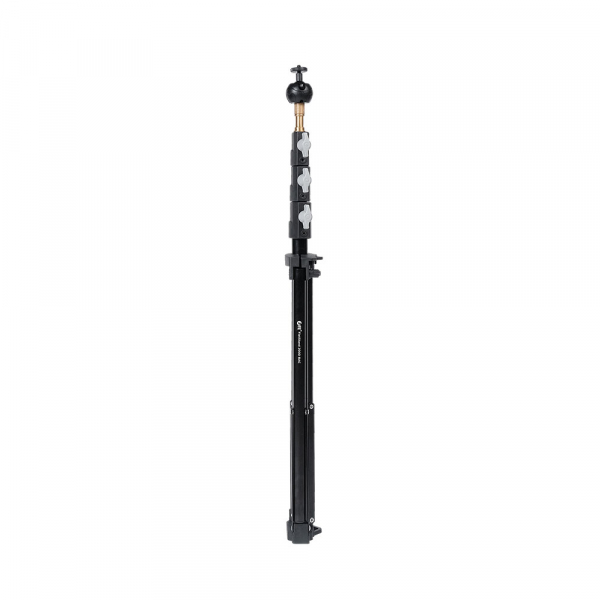 Механизм воздушной амортизации обеспечит безопасную эксплуатацию и предохранит оборудование от повреждений. Три секции надежно соединяются между собой винтовыми зажимами. Регулируемая по высоте база с треногой. Секции стойки-треноги изготовлены из алюминиевого сплава, а зажимы, крестовины и рукоятки - ABS пластик.