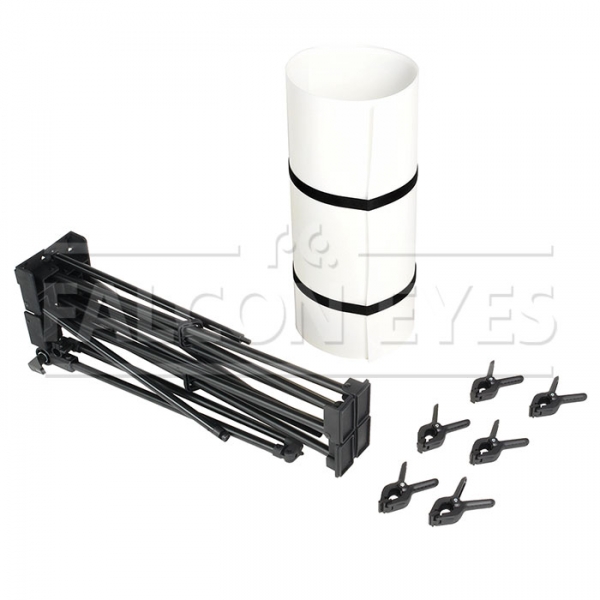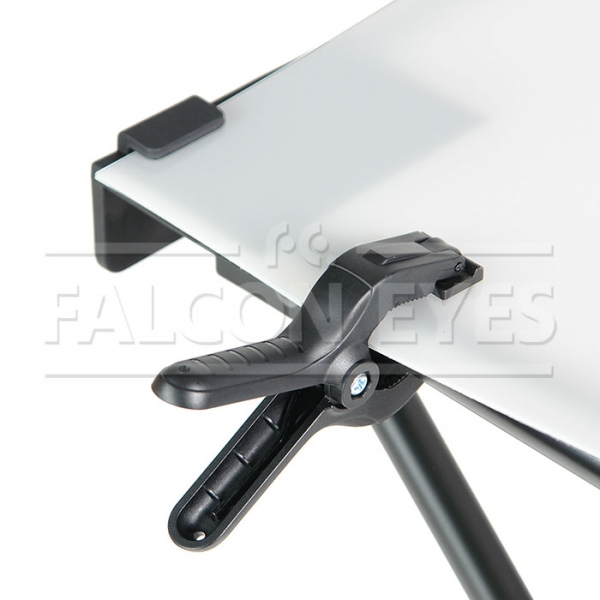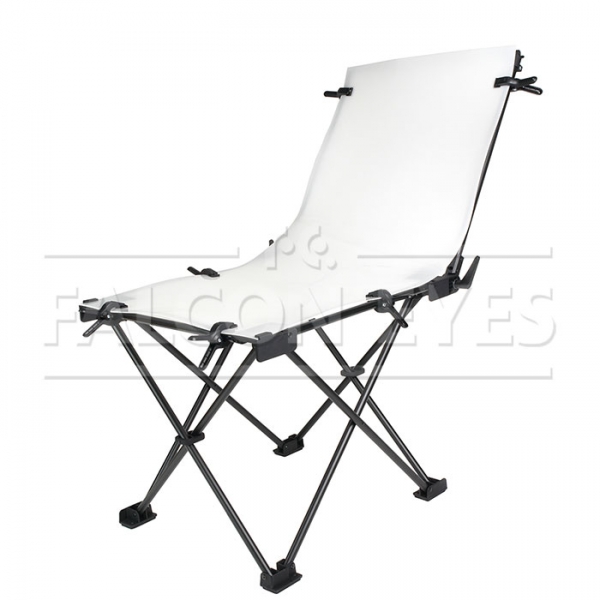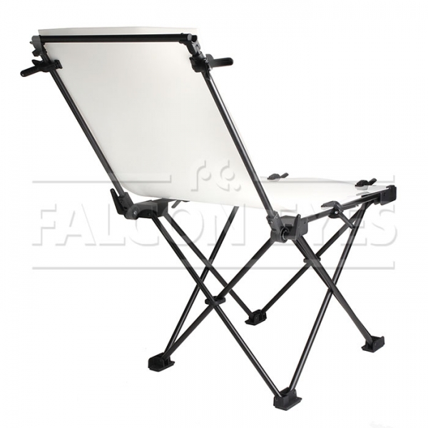 Falcon Eyes ST-0613F – быстроскладной стол (не требует сборки каркаса), подходит для всех видов предметной съемки, съемок малогабаритных предметов (например, сувениров, портативной электроники, ювелирных изделий и т.д.), и может использоваться для съемки вне студии. Оригинальная конструкция каркаса, изготовленная из алюминиевого профиля диаметром 19 мм, позволит быстро подготовить стол для съемки. В комплекте просвечивающий белый пластиковый фон, размером 60х130 см, крепится к каркасу зажимами-клипсами (6 шт в комплекте). Спинка стола раскладывается в горизонтальное положение. Стол собирается в 3 действия: разложить каркас, установить спинку в требуемом положении, закрепить клипсами пластиковый фон.