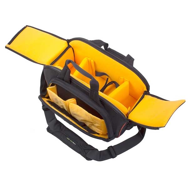 Сумка GreenBean Visa 01 вмещает в себя камкордер среднего размера и дополнительное оборудование. Представляет собой упругий каркас из мягкого и прочного ударопоглощающего материала обтянутого нейлоном устойчивым к климатическим воздействиям, внутренние стенки из вельвета яркого оранжевого цвета, на фоне которого не затеряются даже самые мелкие предметы. По периметру сумки располагаются ребра жесткости. Ножки на дне сумки обеспечивают дополнительную защиту. Двухстворчатая крышка с герметичными молниями с предохранительным замком служит для быстрого доступа к камере и защиты внутреннего содержимого от попадания воды, песка и пыли. Широкая лямка распределяет нагрузку на плече и обеспечивает комфортную эксплуатацию. Сверху находятся ручки со стяжкой, дополнительные ручки расположены на торцах сумки. Основной отсек для техники имеет перегородки на липучках, благодаря этому пространство внутри рюкзака можно настроить под оборудование разного размера. Внешний боковой отсек с жесткой крышкой позволит разместить необходимые аксессуары.