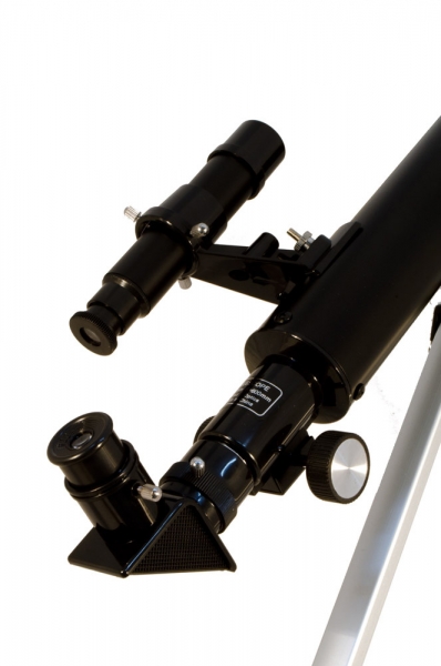 В комплект входят 3 окуляра и трехкратная линза Барлоу, позволяющая увеличить фокусное расстояние телескопа в 3 раза! Для обзорных наблюдений лучше использовать окуляр 20 мм (30x). Чтобы изучить объект более подробно, рекомендуется воспользоваться окулярами 12,5 мм (48x) и 4 мм (150x). Оборачивающий окуляр 1,5x необходим для наземных наблюдений: он дает неперевернутое и не зеркальное изображение. Азимутальная монтировка очень проста в управлении. С ее помощью пользователь может перемещать трубу телескопа по высоте и азимуту. Алюминиевая тренога обеспечивает устойчивое положение конструкции. Удобный лоток позволяет держать все необходимые аксессуары под рукой.