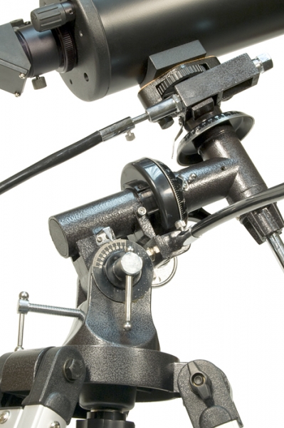 Телескоп установлен на монтировке типа EQ2, которая отлично подходит для астрономических наблюдений. Эта монтировка вращается в плоскости небесного экватора, благодаря чему вы сможете компенсировать суточное вращение небесной сферы поворотом только одной ручки. Монтировка имеет механизмы тонких движений по обеим осям, причем на часовой оси используется червячная передача – это дает возможность установить электропривод для автоматического ведения телескопа. Механизмы тонких движений снабжены длинными гибкими ручками, использование которых позволяет уменьшить уровень вибраций, возникающих при ведении телескопа. Монтировка также снабжена координатными кругами, которые позволяют наводить телескоп с использованием системы экваториальных координат.