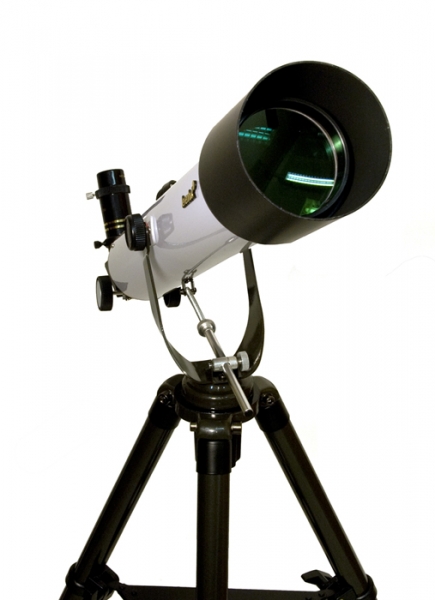 • Труба телескопа Strike 80 NG на симметричной английской (альтазимутальной) монтировке с ярмом и осью склонений.