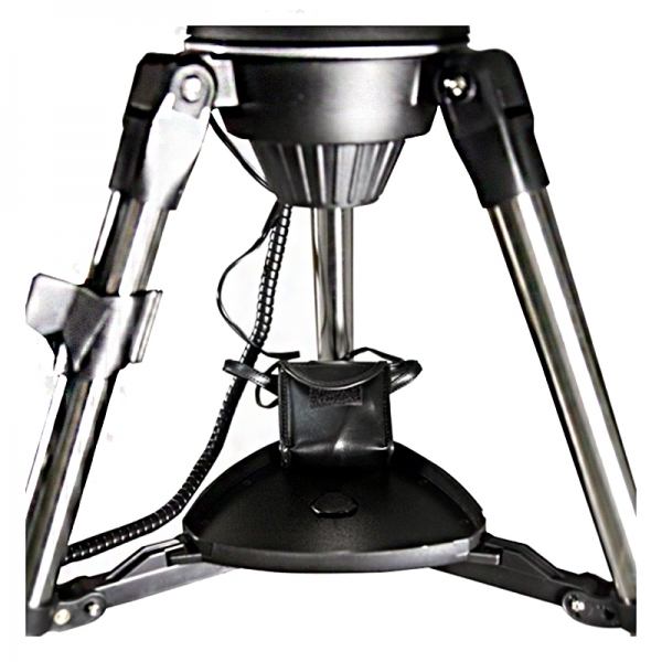 Телескоп установлен на жесткой стальной треноге регулируемой высоты. Это позволяет настроить монтировку для наблюдателя любого роста, а благодаря большей жесткости трубчатых стальных ног (по сравнению с алюминиевыми треногами) уменьшается уровень вибраций монтировки и телескопа. Штатив снабжен удобной полочкой для принадлежностей и держателем для пульта управления монтировкой.