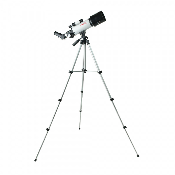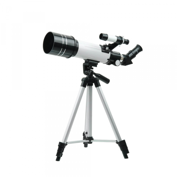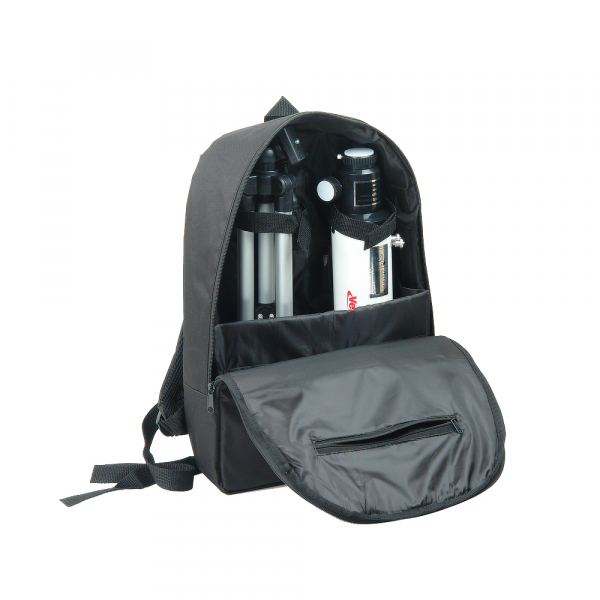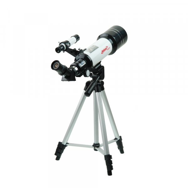 Телескоп Veber 400/70 рефрактор с рюкзаком Veber 400/70 – простой и надежный линзовый телескоп-рефрактор для начинающих любителей астрономии, как детей, так и взрослых. Справиться с этой моделью сможет любой: достаточно установить трубу на алюминиевую треногу – и прибор готов к работе. Уход за телескопом сводится к протиранию объектива и окуляра специальной салфеткой. Главное аккуратно обращаться с прибором, и он прослужит долгие годы (на него распространяется пожизненная гарантия). Что можно увидеть в телескоп Veber с ахроматическим объективом диаметром 70 мм? Его предельная звездная величина 11,3m. Значит даже в городе, где небо засвечено фонарями и рекламными щитами, в телескоп можно рассмотреть кратеры и моря на Луне, искусственные спутники Земли, крупные астероиды и кометы. Чтобы наблюдать за объектами дальнего космоса лучше выехать за город. Компактный телескоп, помещающийся в небольшом рюкзаке, рассчитан именно на такого, легкого на подъем астронома. Без лишней подсветки и городского смога он сможет наблюдать за Сатурном и Юпитером, метеоритным дождем и Туманностью Андромеды. Смартфон, присоединенный с помощью адаптера к окуляру, позволит зафиксировать самые интересные моменты. Оптические характеристики конструкции почти не уступают характеристикам более сложных и дорогих моделей. Труба с объективом диаметром 70 мм и фокусным расстоянием 400 мм (светосила 1/5,7) дает четкую, контрастную картинку по всему полю зрения. В ней нет конвективных потоков теплого и холодного воздуха и лишних элементов, способных деформировать изображение и снизить общее светопропускание телескопа. Темное покрытие внутри трубы поглощает переотраженные от ее внутренней поверхности лучи света, что позволяет сохранить высокий контраст картинки. Увеличение от 16х до 185х позволяет детально рассматривать объекты, находящиеся на разном удалении от наблюдателя. Прямое изображение, которое дает телескоп, подходит для наблюдения не только за астрономическими объектами, но и за вполне земными, поэтому прибор можно использовать как зрительную трубу большой мощности. Благодаря монтировке азимутального типа его удобно наводить на объекты, перемещая с помощью рукоятки по вертикали и горизонтали. Точная и плавная фокусировка, без проскальзывания, обеспечена кремальерой (реечным механизмом). Принадлежности для работы с телескопом не нужно подбирать, всё необходимое есть в комплекте. В первую очередь это окуляры Pl6,5 и К25 с мягкими наглазниками, защищающими от боковой засветки. Если наблюдатель носит очки, то для более комфортной работы он может загнуть наглазник, чтобы уменьшить расстояние между окуляром и зрачком. Обязательно пригодятся и линза Барлоу 3х, повышающая кратность окуляров в 3 раза, и фильтры – солнечный, снижающий интенсивность света до безопасных значений, и лунный, увеличивающий контраст. Легкий алюминиевый штатив для телескопа – неприхотливый и устойчивый. Телескопические 3-секционные ноги позволяют подобрать оптимальную высоту штатива – от 40 до 124 см. Весь комплект находится в рюкзаке. Бережное размещение трубы, треноги и комплекта принадлежностей обеспечивают мягкие амортизирующие стенки, карманы и фиксирующие стяжки.