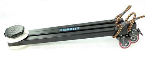 • Отличается своим небольшим размером, портативностью, она очень проста в работе, а ее установка занимает считанные минуты. Конструкция тележки очень прочная, она с легкостью выдерживает массу установленного на нее оборудования: крана, панорамной головки и камеры. Максимально допустимая нагрузка составляет 45 кг.