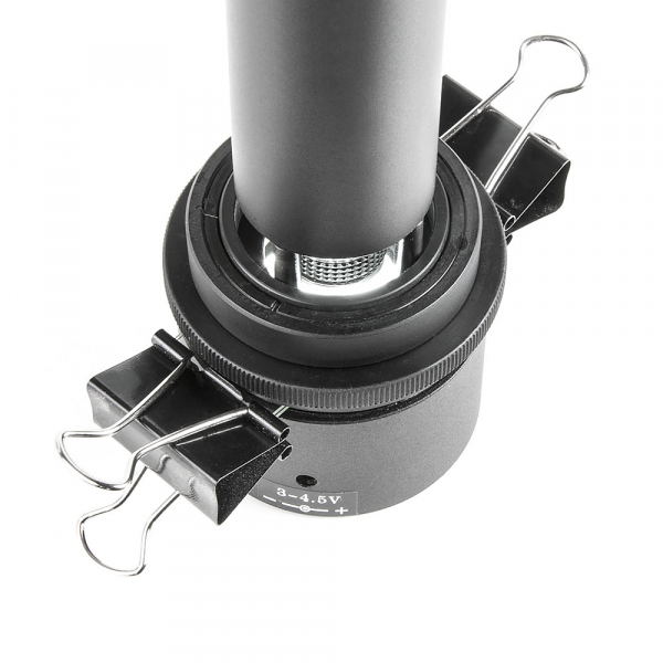 Размер микроскопа без блока подсветки Высота — 195 мм, диаметр — 37 мм