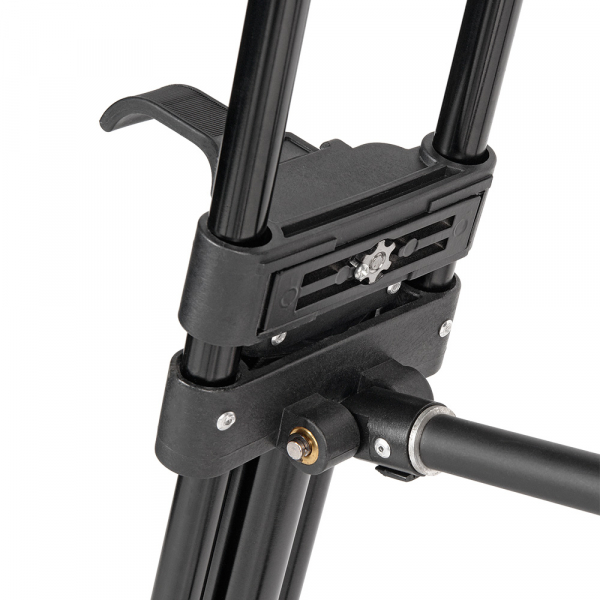 Для усиления штатива используется верхняя съёмная растяжка, которая не позволяет ногам разъезжаться и обеспечивает быстрое затухание колебаний.